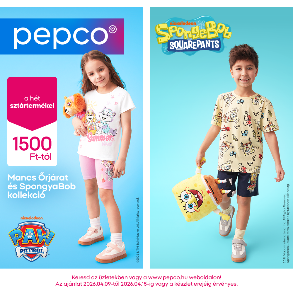 Olyan ruhákat keresel, amelyek ötvözik a gyermekkori örömöt a mindennapi kényelemmel? A Pepco legújabb kollekciójában a SpongyaBob és a Mancs Őrjárat kedvenc karaktereivel díszített darabokat találsz! A puha anyagok és a kényelmes szabás gondoskodnak róla, hogy a gyerekek szabadon mozoghassanak a mindennapi kalandjaik során. Ugorj be a Pepco-ba, nézd meg a hét sztártermékeit már 1600 Ft-tól, és engedd, hogy gyermeked kedvenc mesehőseivel vágjon bele a következő küldetésébe!